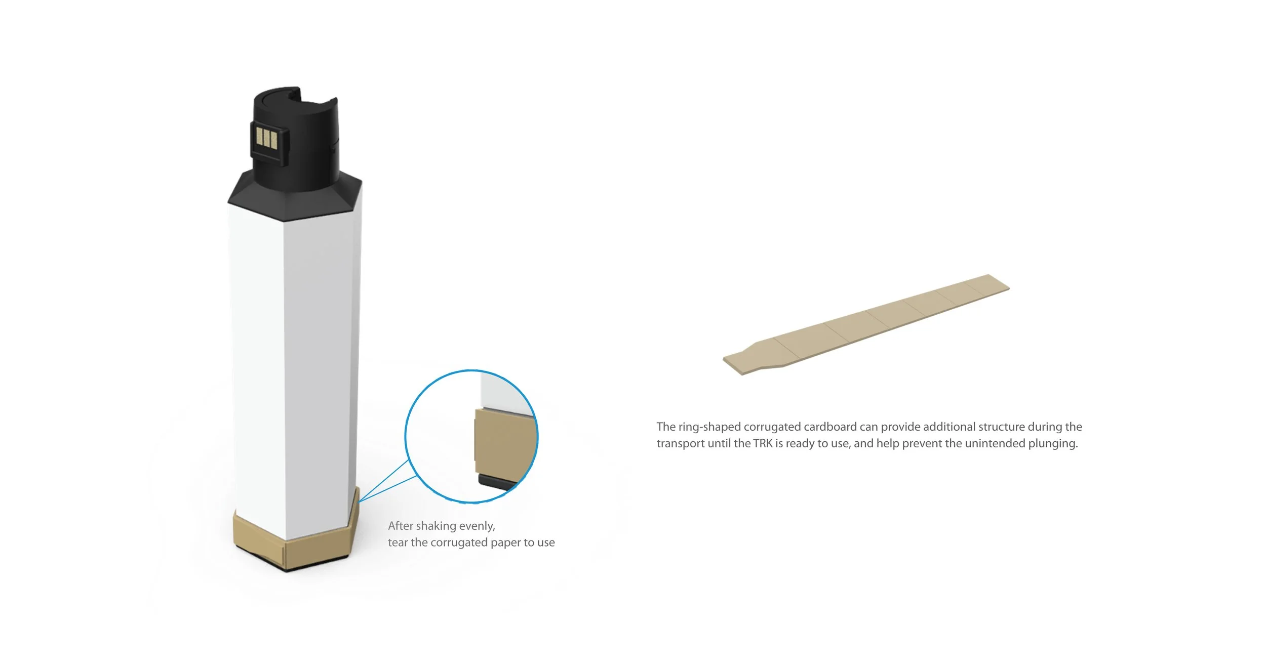 Toner reload kit concepts were explored to 1. Reduce packaging volume and 2. Utilize more sustainable materials.