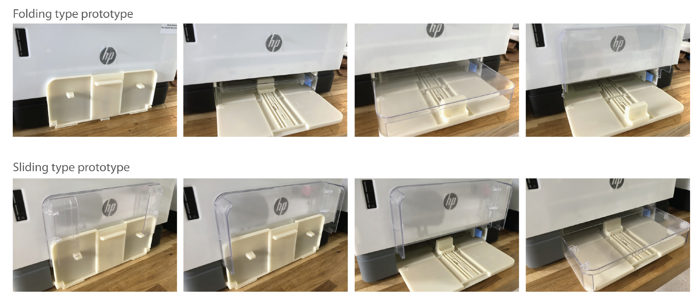 The paper tray is an example of exploration that was done to streamline set-up experience while reducing the shipping foot print of the printer.